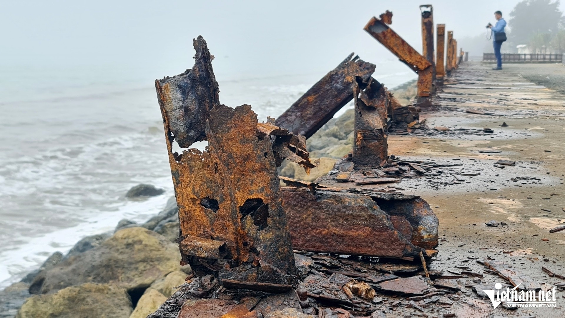 Clip lan can dọc bãi biển Sầm Sơn bị hư hỏng