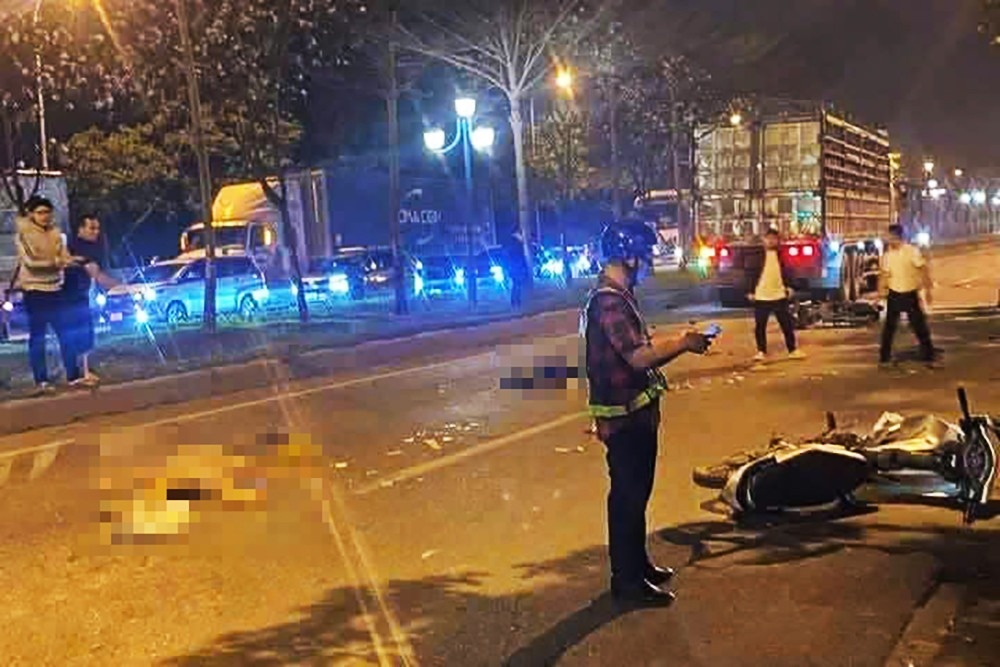 Ôtô tải va chạm với xe máy ở Hà Nội, 2 người tử vong